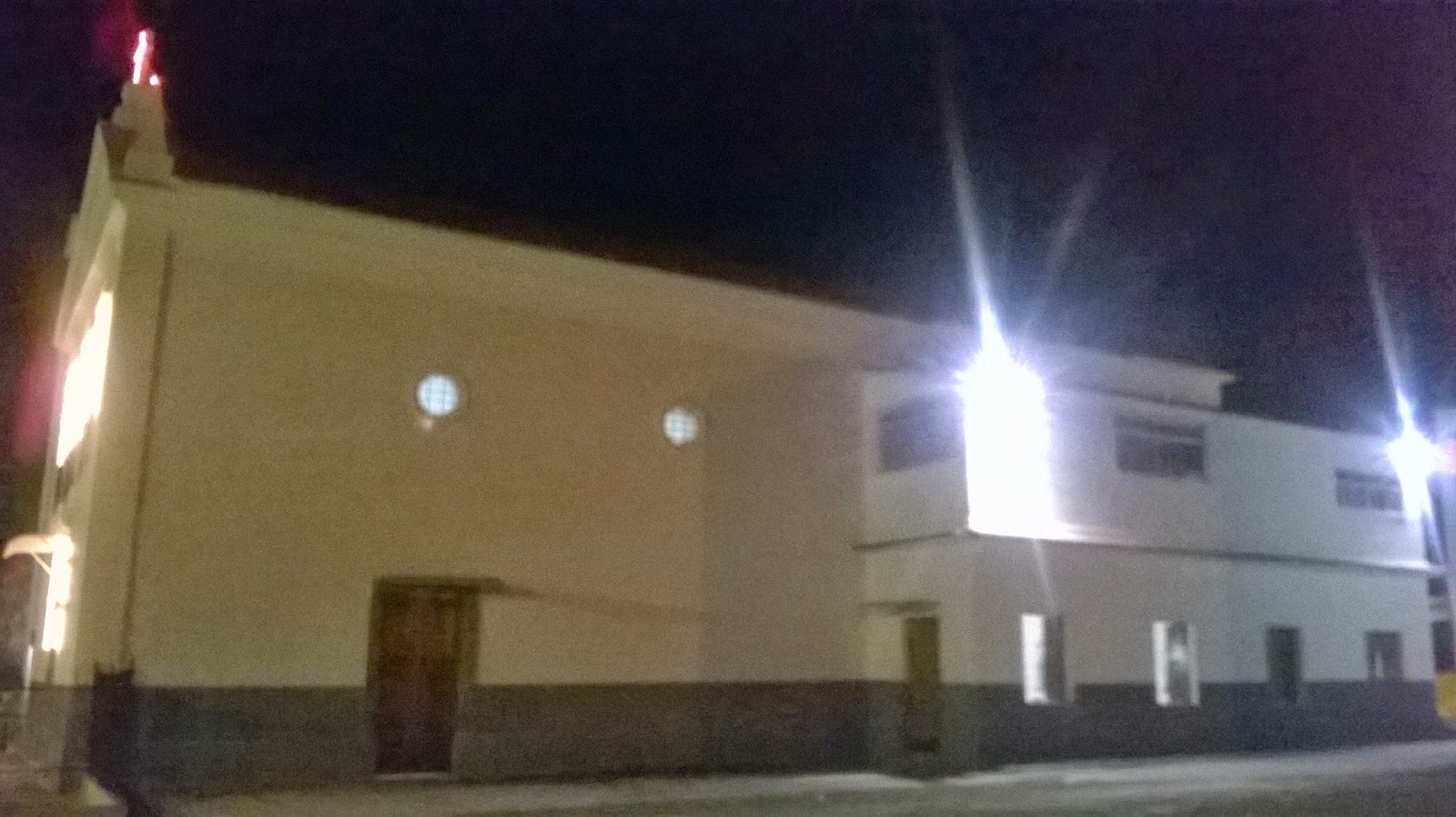 tribuna, e nas paredes lateraes tem dois paineis antigos. O edificio é illuminado